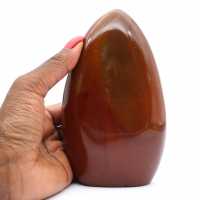 Le jaspe rouge en bloc poli, variété de quartz microcristallin composé de silice, se distingue par sa teinte caractéristique due aux oxydes de fer. Cette pierre ornementale, présente une surface lisse et brillante après polissage. Sa formation, d'origine hydrothermale ou sédimentaire, lui confère des motifs uniques.